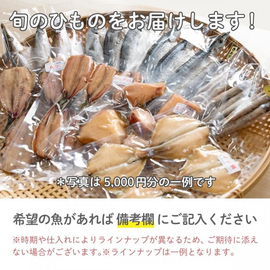 ・旬の魚のひものをお届けするため、詰め合わせる種類はおまかせとなります。